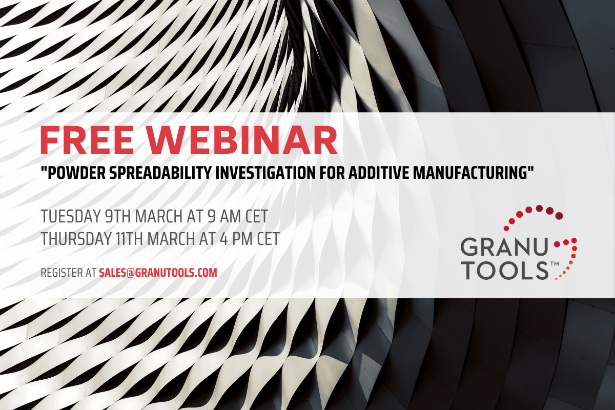 Free AM Webinar - Powder spreadability investigation for Additive Manufacturing - 9th March (9AM CET) & 11th March (4PM CET), 2021
