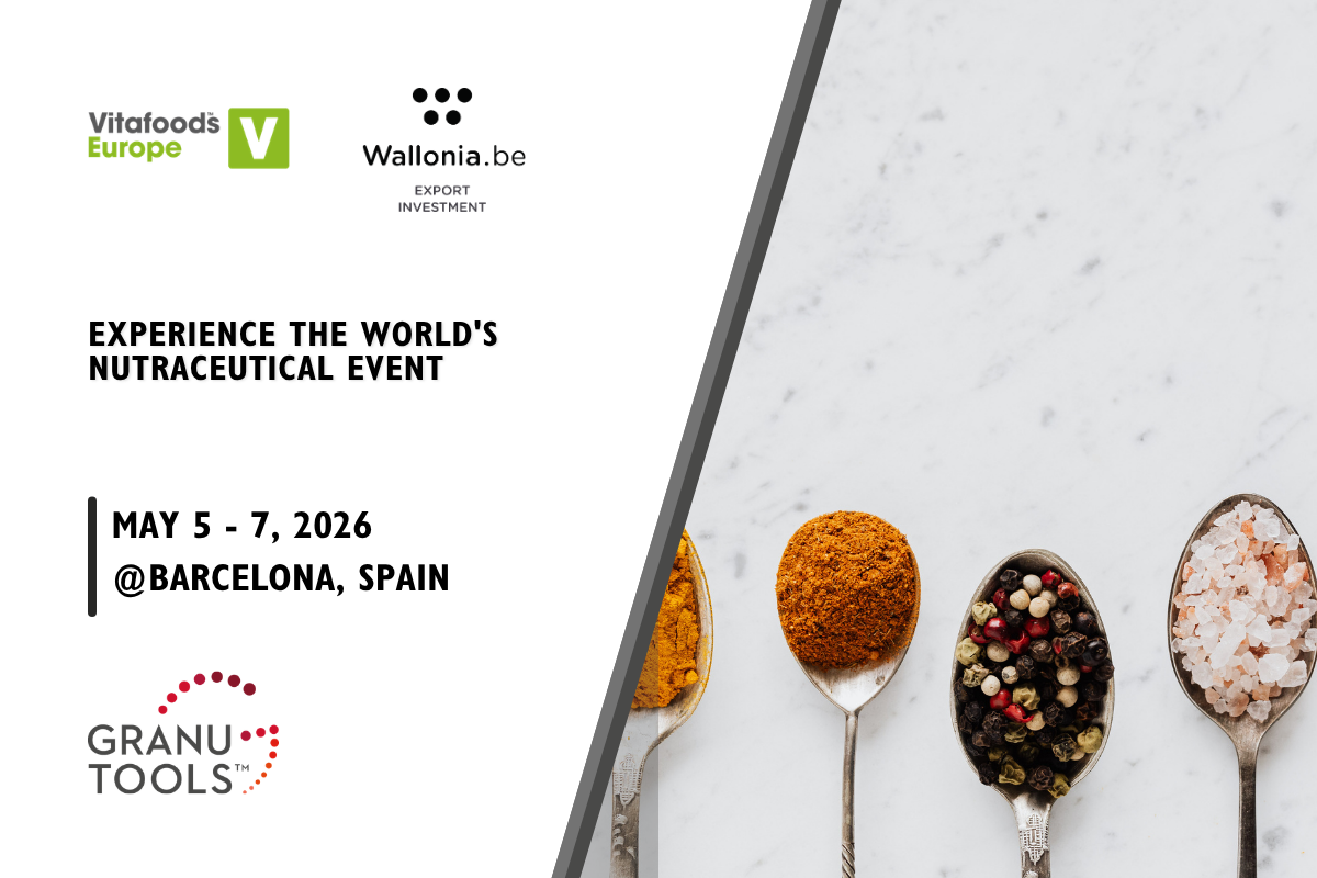 Granutools is pleased to announce its participation in Vitafoods Europe 2026, one of the world’s leading events for the nutraceutical, functional food, and ingredient industries. Our presence at the exhibition is proudly supported through a collaboration with AWEX (Wallonia Export & Investment Agency).